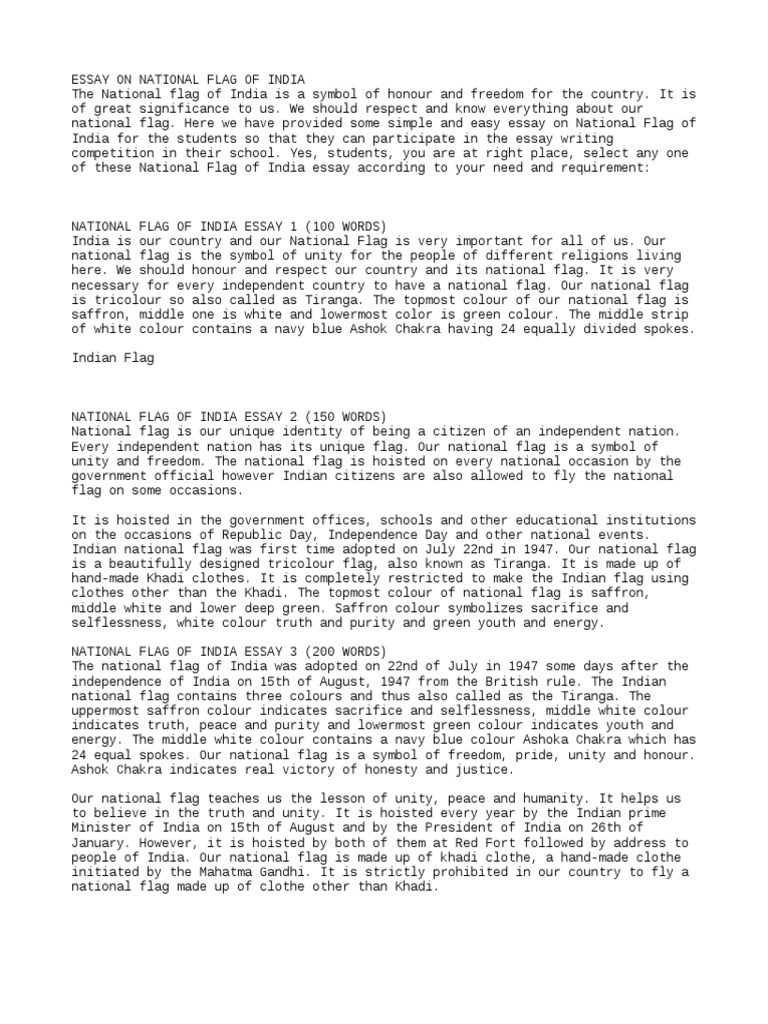 Essay On Flag Flag Nationalism People are making india proud by achieving a good name and fame in various sectors or industries.